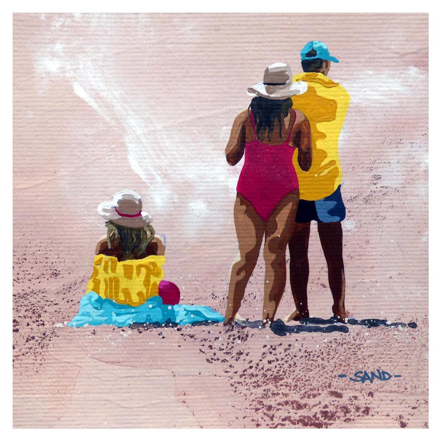 This unique and original contemporary artwork "équipe de plage rose" on the subject of Life style has been created by the contemporary artist Sand.