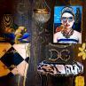 The artist used Acrylic, Gluing, Gold leaf, Paper, Pastel, Posca media on Canvas board to create this Figurative, Small size painting.