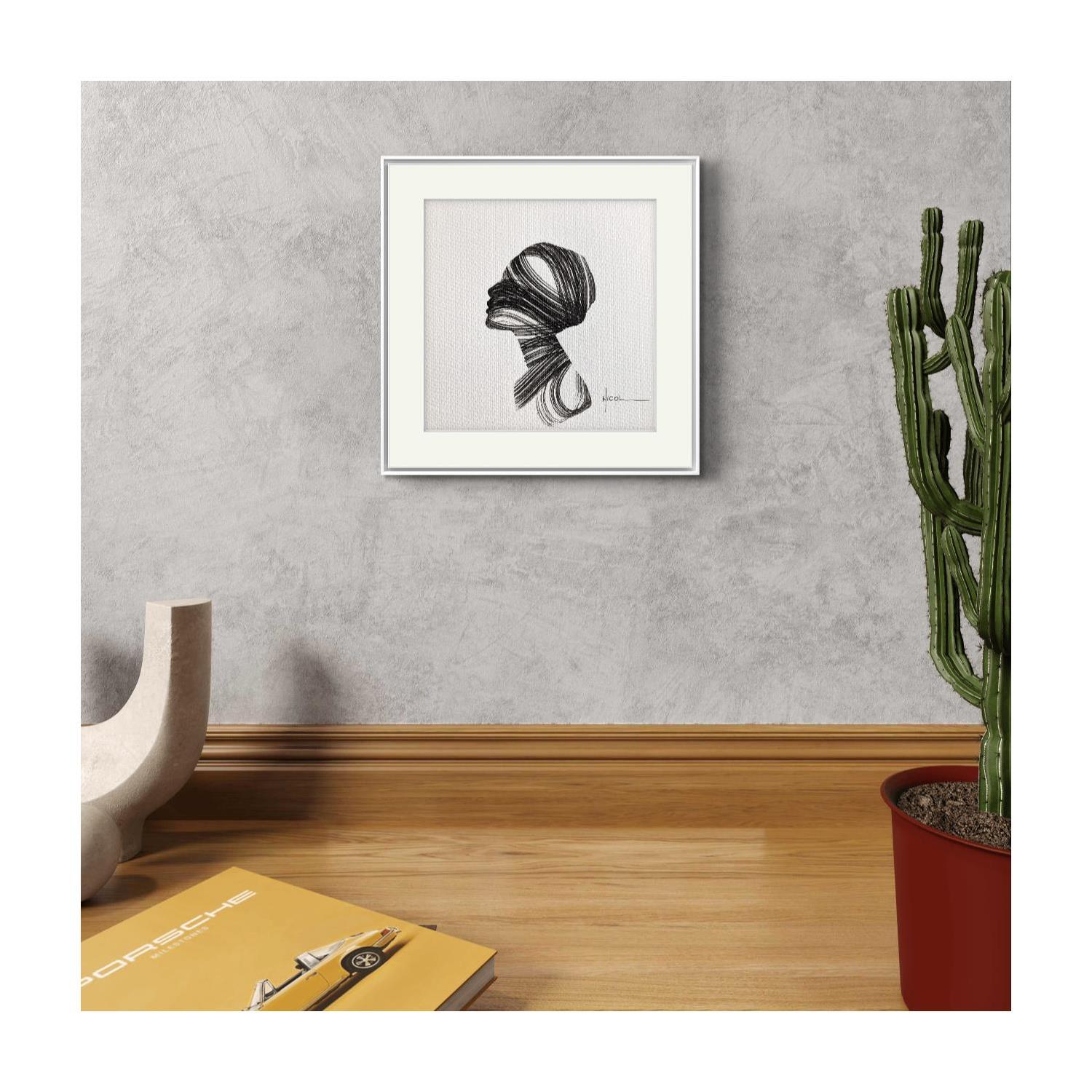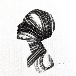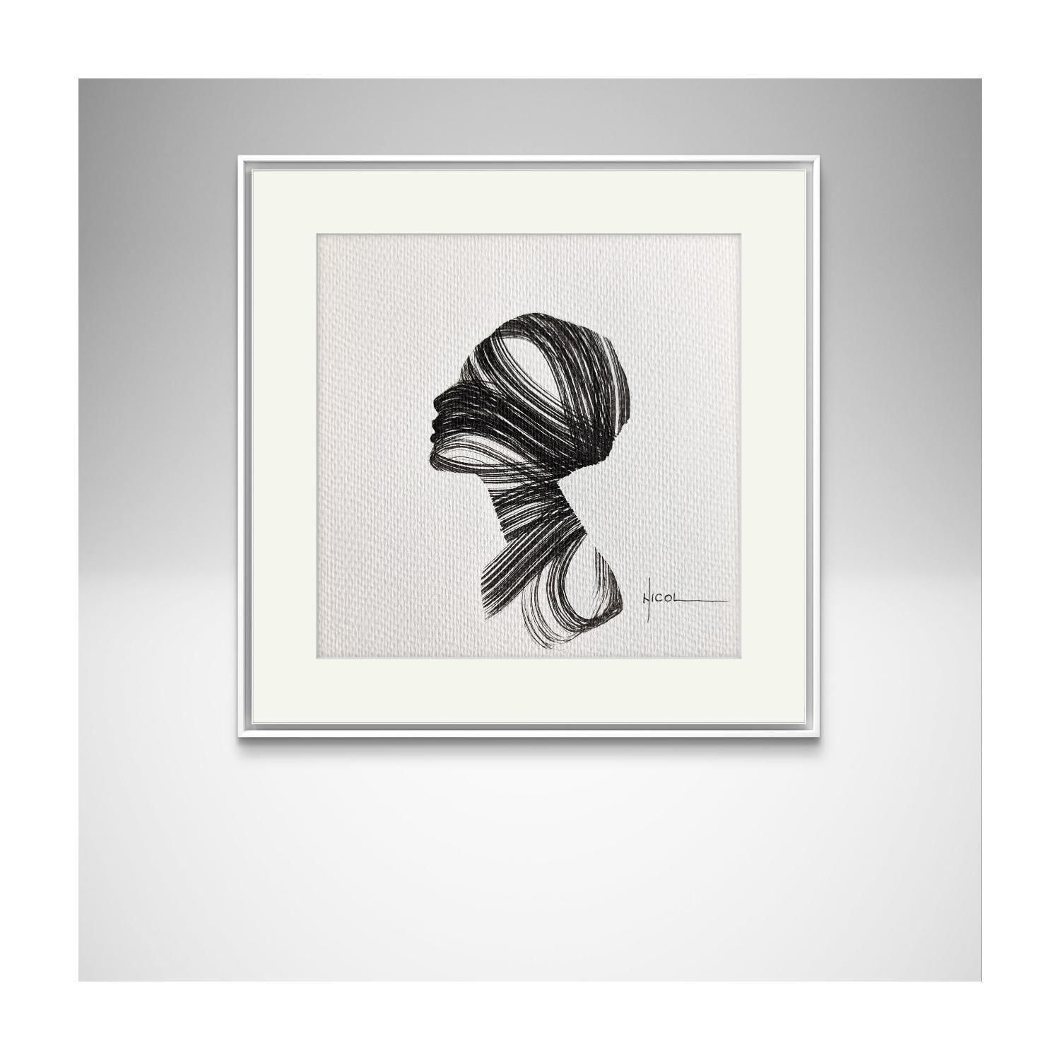This unique and original contemporary artwork "Time CCXCVII" on the subjects of Portrait, Minimalist, Black & White has been created by the contemporary artist Nicol.