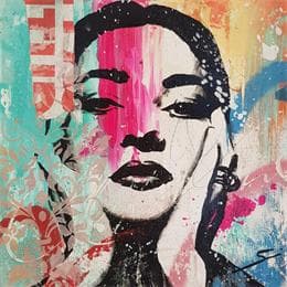 This unique and original contemporary artwork "Maria C" on the subject of Pop icons has been created by the contemporary artist Mestres Sergi.