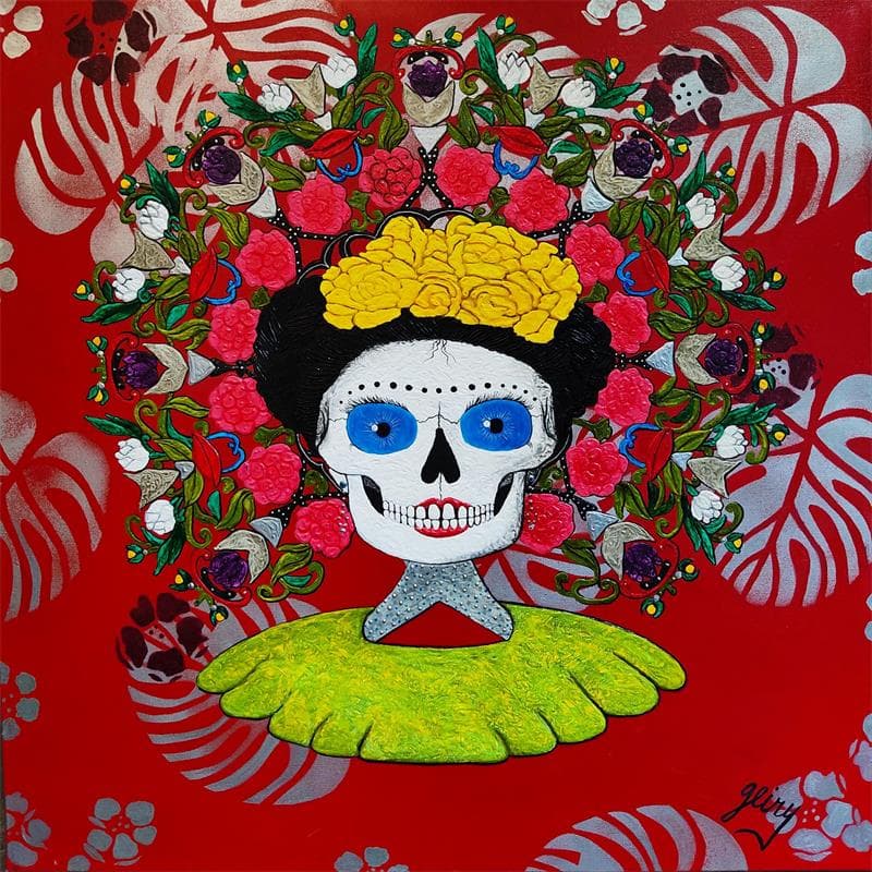 This unique and original contemporary artwork "FRIDA ROJA" on the subject of Portrait has been created by the contemporary artist Geiry.