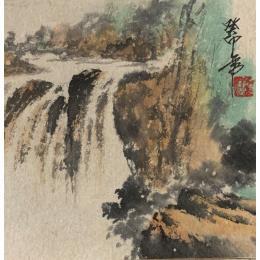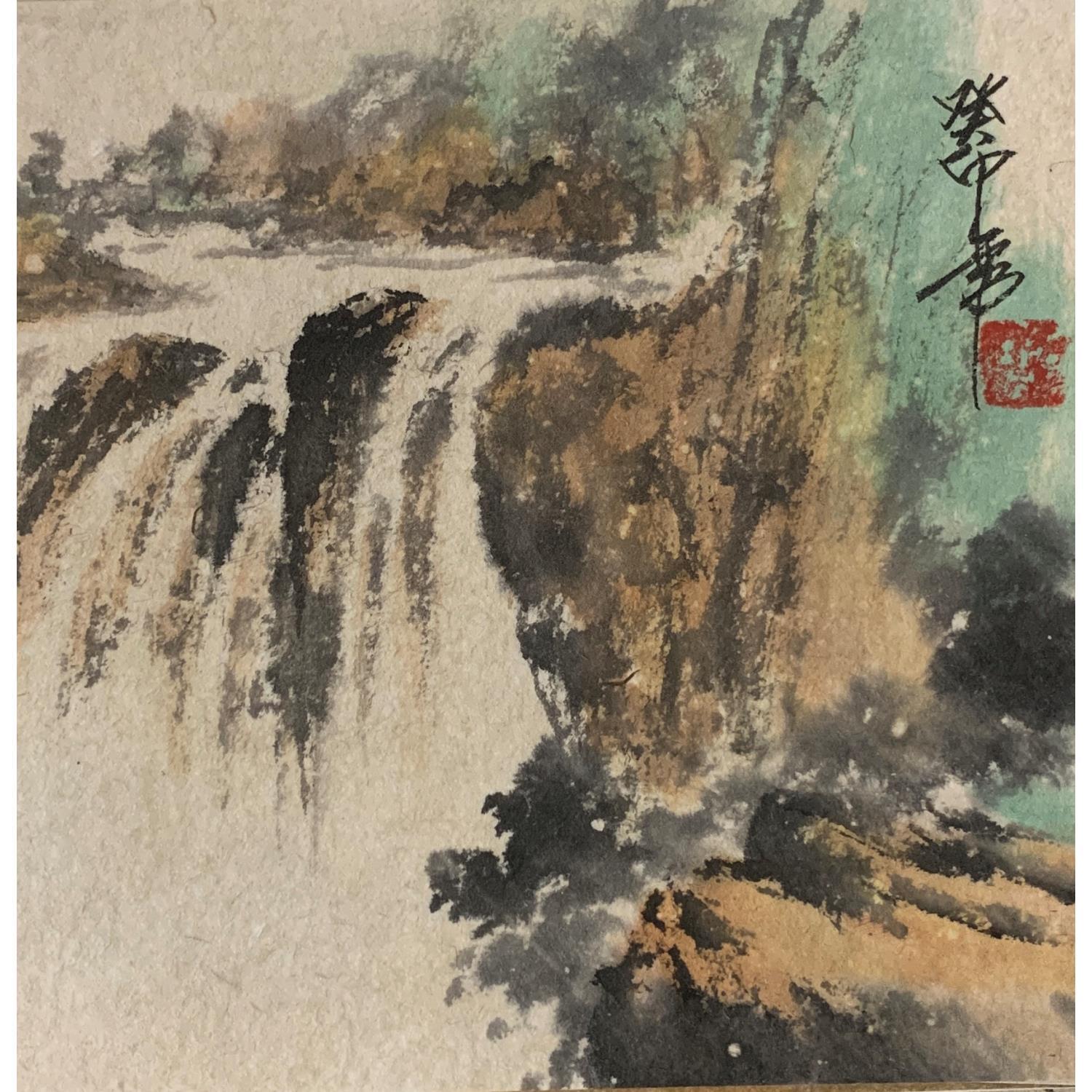 This unique and original contemporary artwork "Waterfall " on the subject of Landscapes has been created by the contemporary artist Yu Huan Huan.