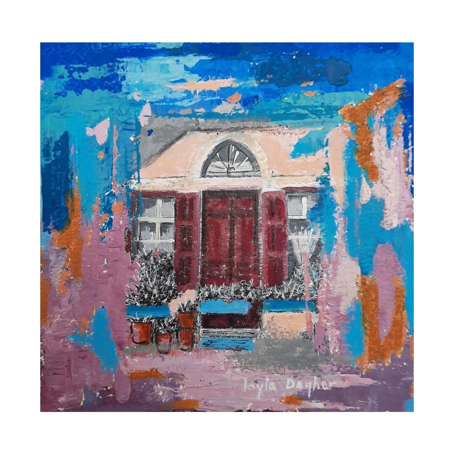 The artist likes to photograph the old houses located in the old districts of Beirut. From there, she composes subtle, half-griffed, half-painted, skilfully worked and richly colored paintings that are both harmonious and textured, oscillating between the artist's will? To pay homage to the unique architectural diversity of her city which, as time goes by, tends to disappear under the impulse of an always growing urbanization.