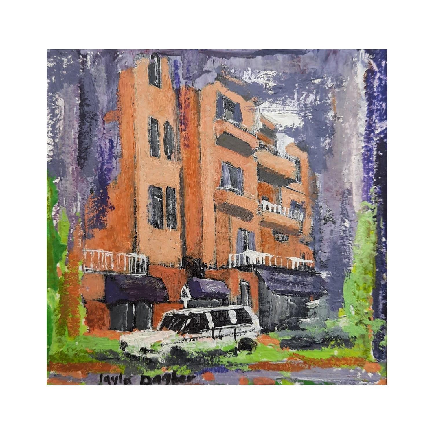 The artist likes to photograph the old houses located in the old districts of Beirut. From there, she composes subtle, half-griffed, half-painted, skilfully worked and richly colored paintings that are both harmonious and textured, oscillating between the artist's will? To pay homage to the unique architectural diversity of her city which, as time goes by, tends to disappear under the impulse of an always growing urbanization.