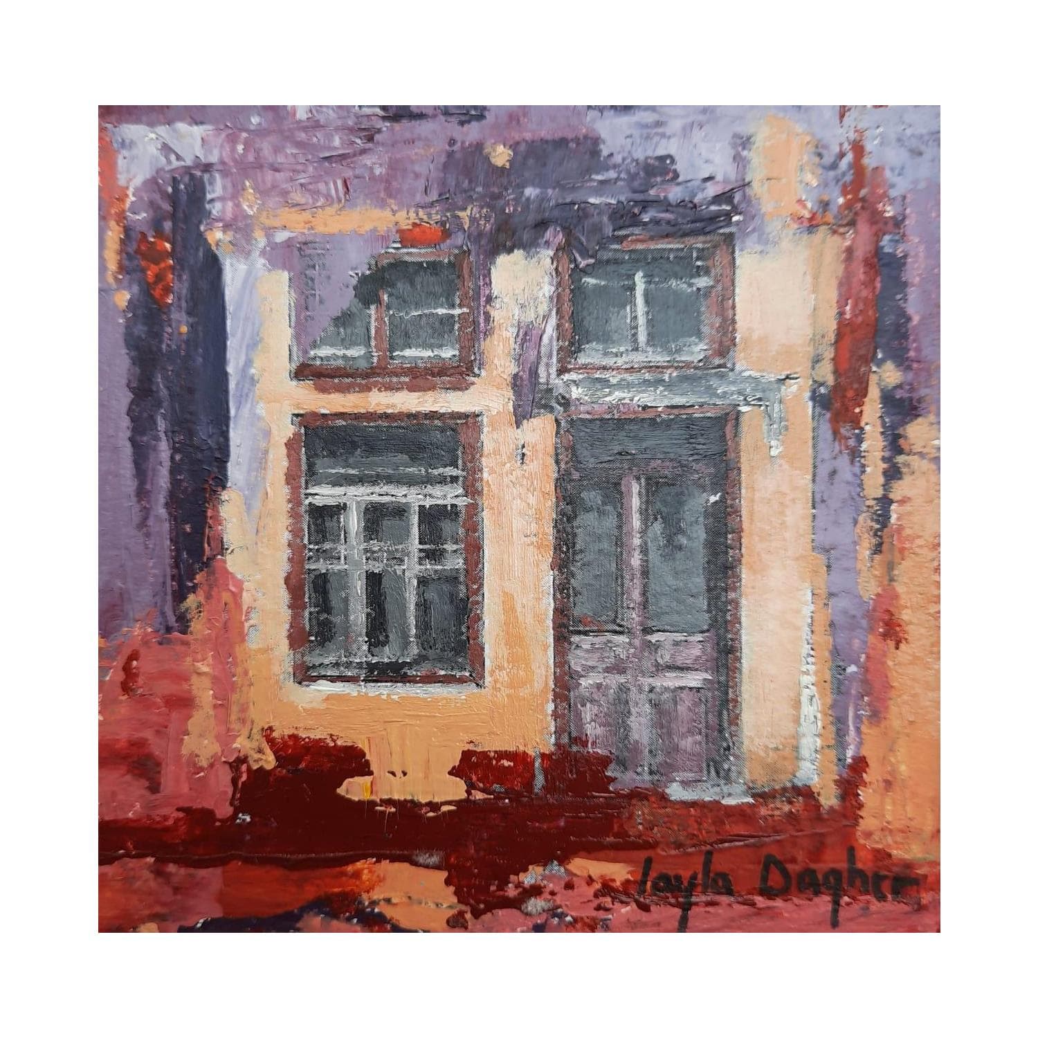 The artist likes to photograph the old houses located in the old districts of Beirut. From there, she composes subtle, half-griffed, half-painted, skilfully worked and richly colored paintings that are both harmonious and textured, oscillating between the artist's will? To pay homage to the unique architectural diversity of her city which, as time goes by, tends to disappear under the impulse of an always growing urbanization.