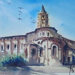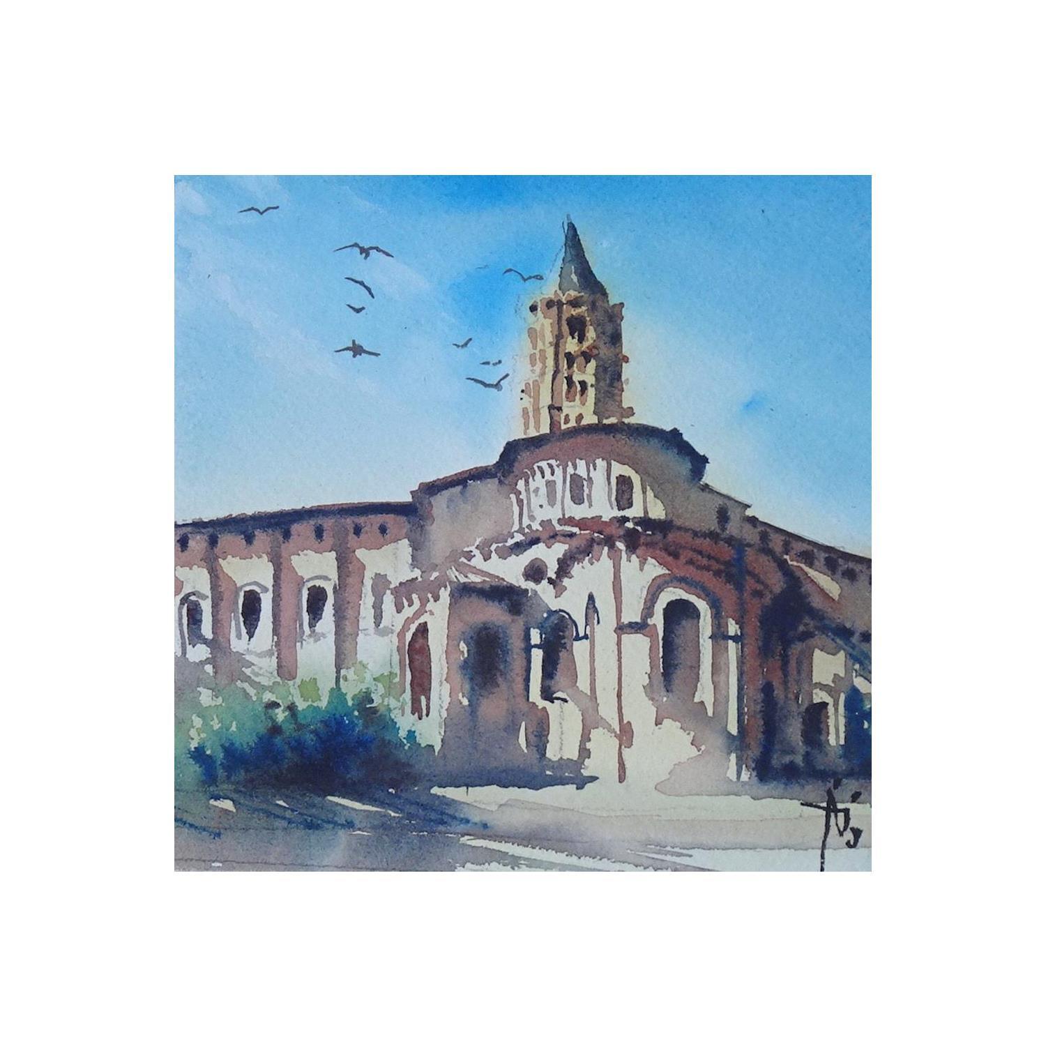 Majestueuse Saint SerninPainting Majestueuse Saint Sernin by Abbatucci Violaine | Painting Figurative Watercolor