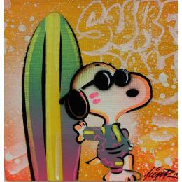 This unique and original contemporary artwork "Snoopy surf" on the subject of Pop icons has been created by the contemporary artist Kedarone.
