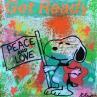 This unique and original contemporary artwork "Snoopy peace" on the subject of Pop icons has been created by the contemporary artist Kikayou.
