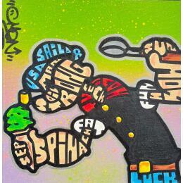 This unique and original contemporary artwork "POPEYE SPINACH ICE CREAM" on the subject of Pop icons has been created by the contemporary artist Cmon.