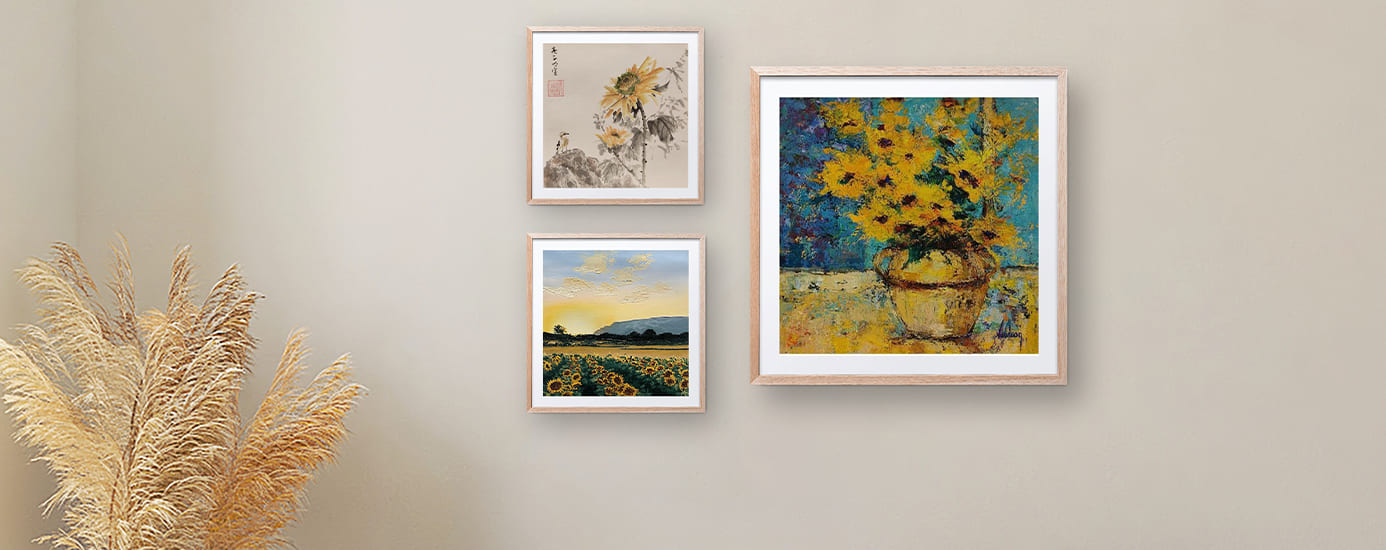 We shall also follow Lyne in the country of Giono, where she depicts the clear skies above a beautiful countryside with sandy, bluish colors, punctuated with purple flowers. As for the fields of sunflowers, they are the privileged domain of the artist Arkady, who strives to highlight their intensity; the yellow flowers bloom through their balanced compositions with, the silhouette of the Sainte-Victoire mountain, as a faithful neighbor.