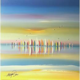 This unique and original contemporary artwork "Les voiles du désir" on the subject of Marine has been created by the contemporary artist Fonteyne David.