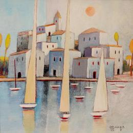This unique and original contemporary artwork "Reflets dorés" on the subjects of Marine, Landscapes, Urban has been created by the contemporary artist Burgi Roger.