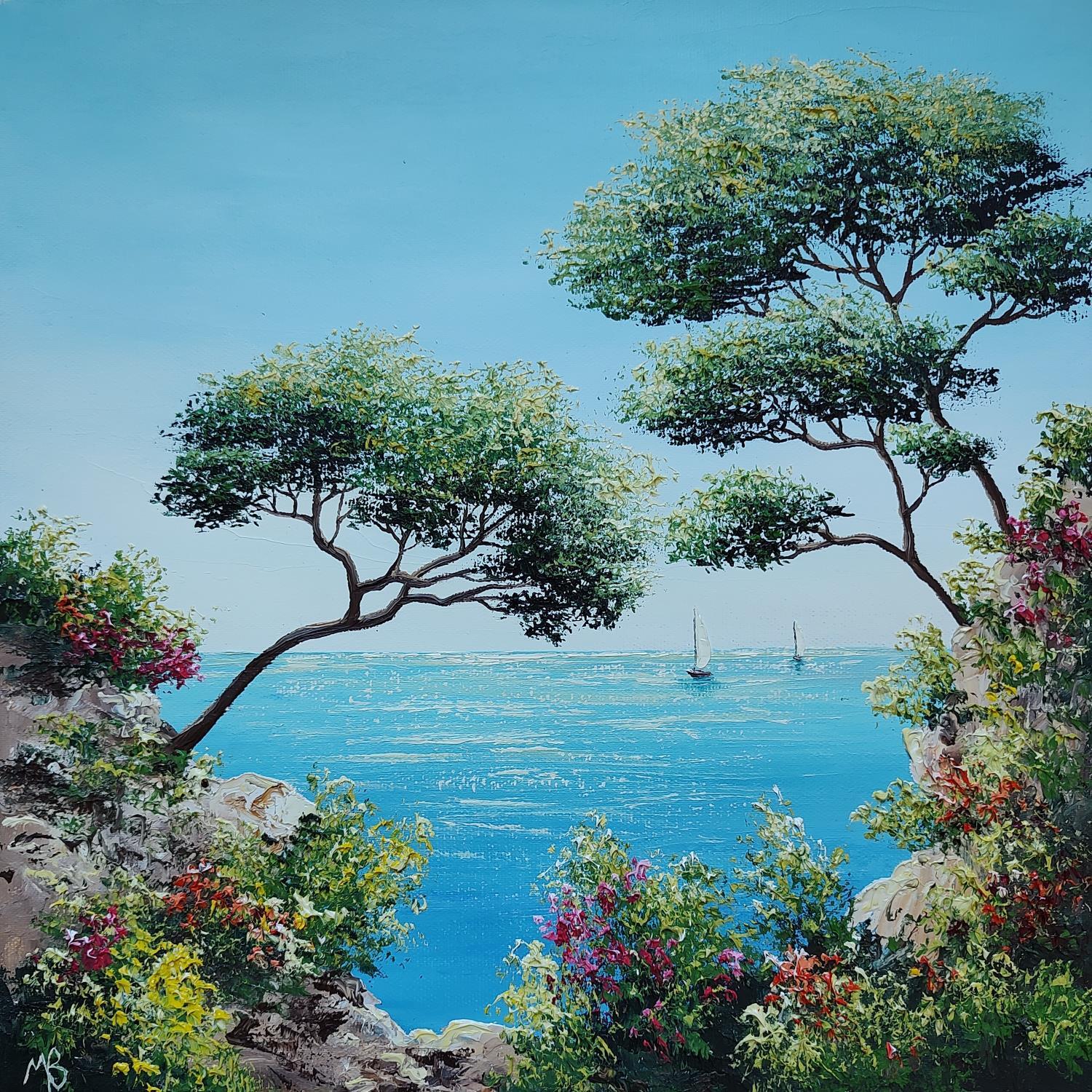 This unique and original contemporary artwork "Fleurs dans les calanques" on the subject of Landscapes has been created by the contemporary artist Blandin Magali.