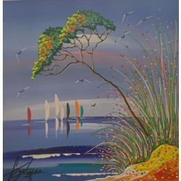 This unique and original contemporary artwork "Derrière les Rochers" on the subjects of Landscapes, Nature has been created by the contemporary artist Fonteyne David.