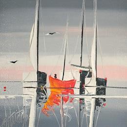 This unique and original contemporary artwork "Avec vous le soir" on the subjects of Marine, Landscapes has been created by the contemporary artist Fonteyne David.