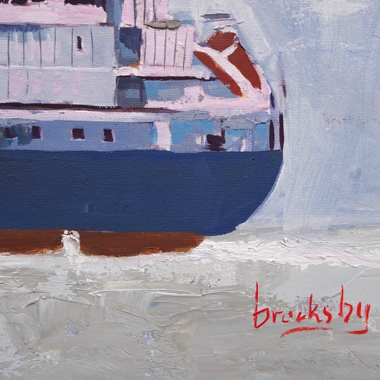 This unique and original contemporary artwork "Tanker" was created by contemporary artist Brooksby. The artist used oil on canvas to create this large-format figurative painting.