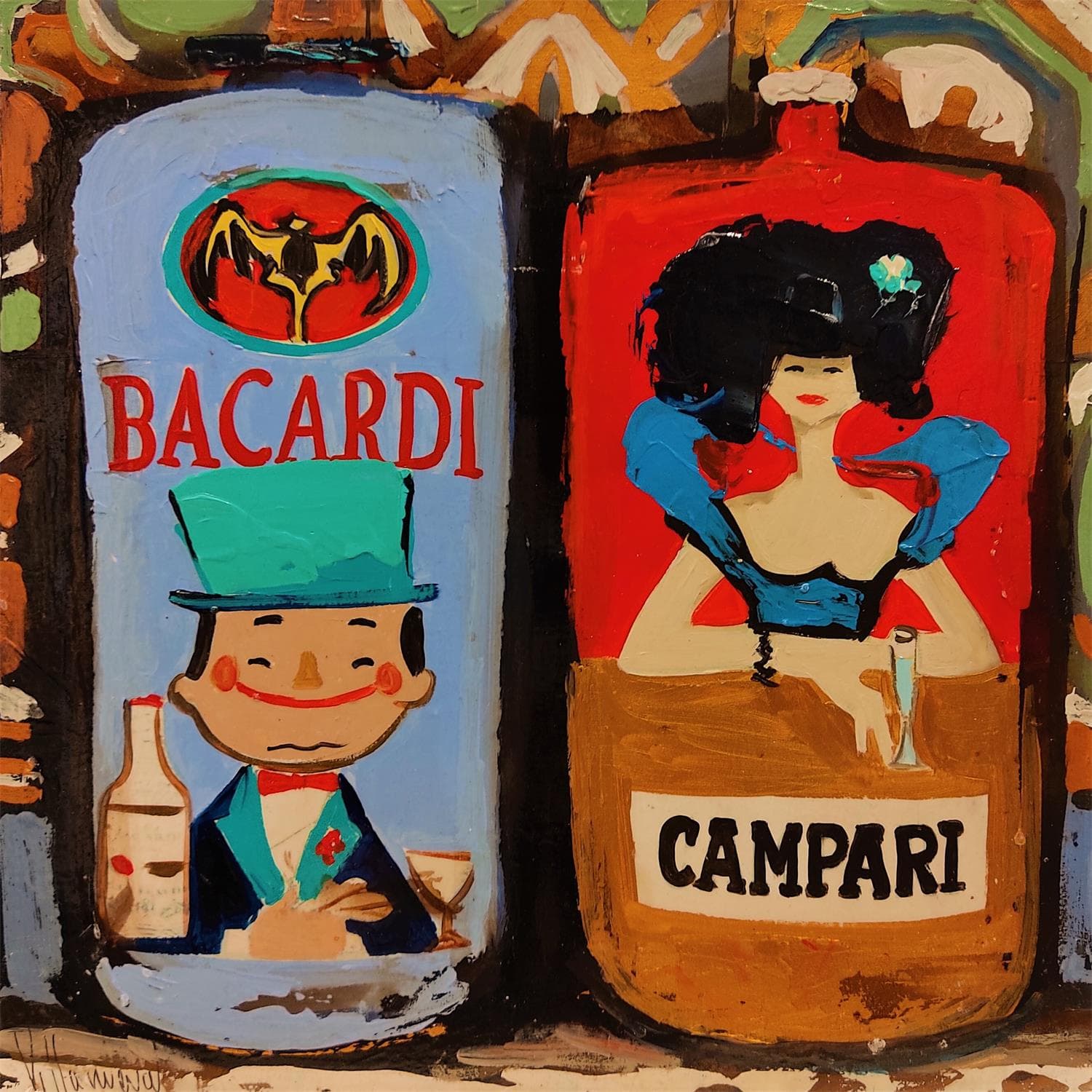 This unique and original contemporary artwork "botellas 4" on the subject of still-life has been created by the contemporary artist Villanueva Puigdelliura Natalia.