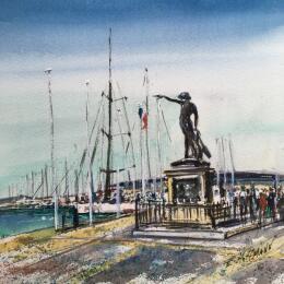 Toulon le veilleur du port Painting Toulon le veilleur du port  by Hoffmann Elisabeth | Painting Figurative Urban Marine Watercolor