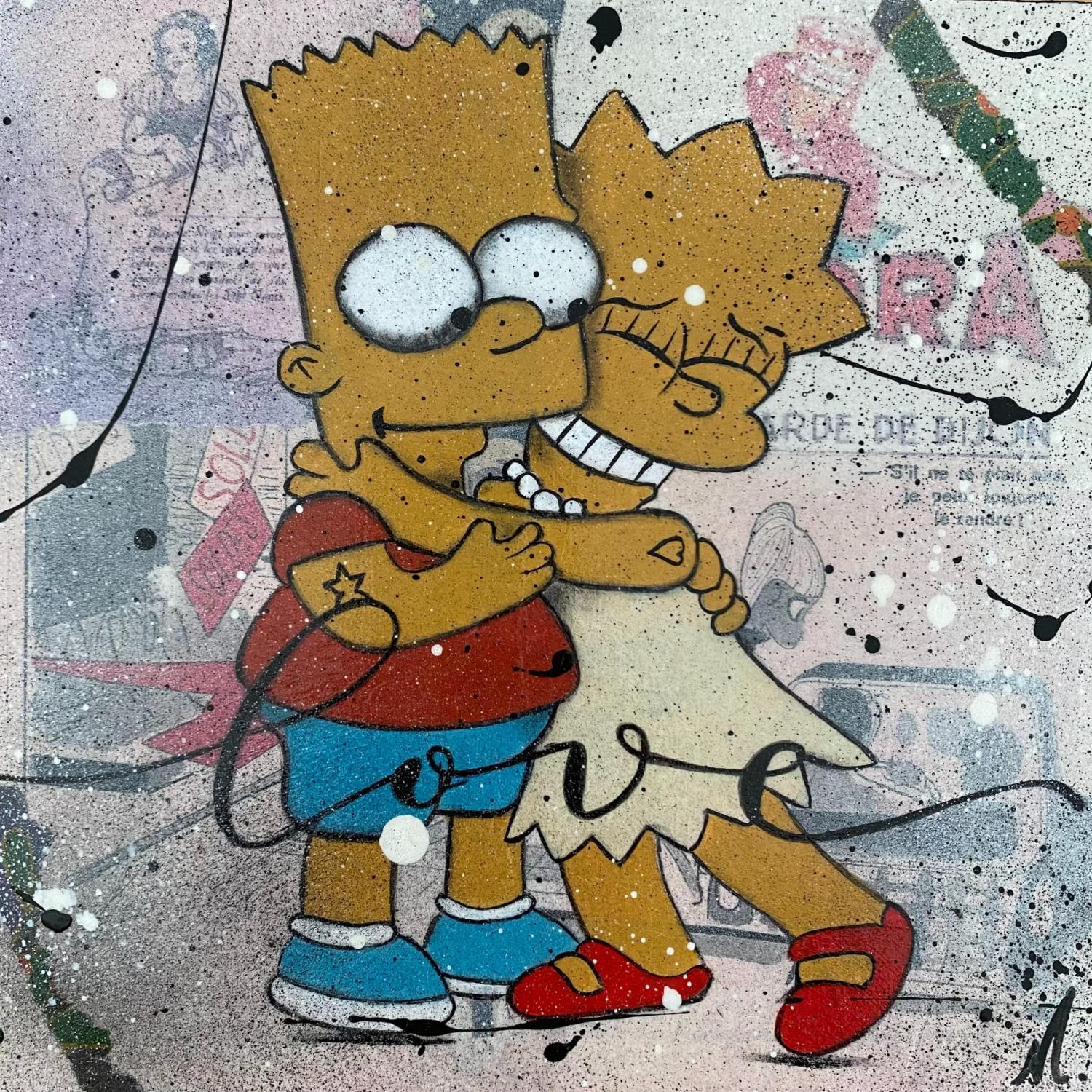 This unique and original contemporary artwork "Family Simpson" on the subject of Pop icons has been created by the contemporary artist Marie G. .