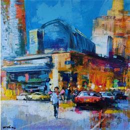 This unique and original contemporary artwork "Rimeli center, afternoon" on the subject of Urban has been created by the contemporary artist Frédéric Thiery.