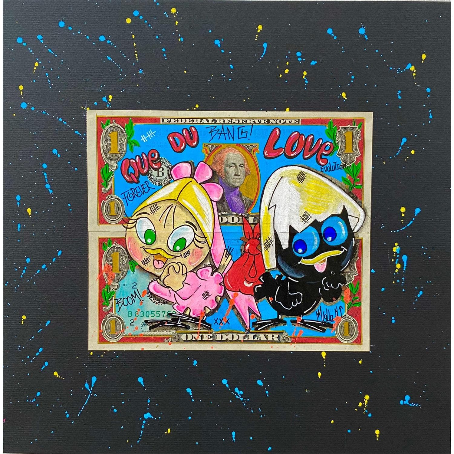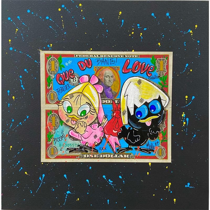 This unique and original contemporary artwork "Que du love" on the subject of Pop icons has been created by the contemporary artist Molla Nathalie .