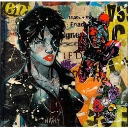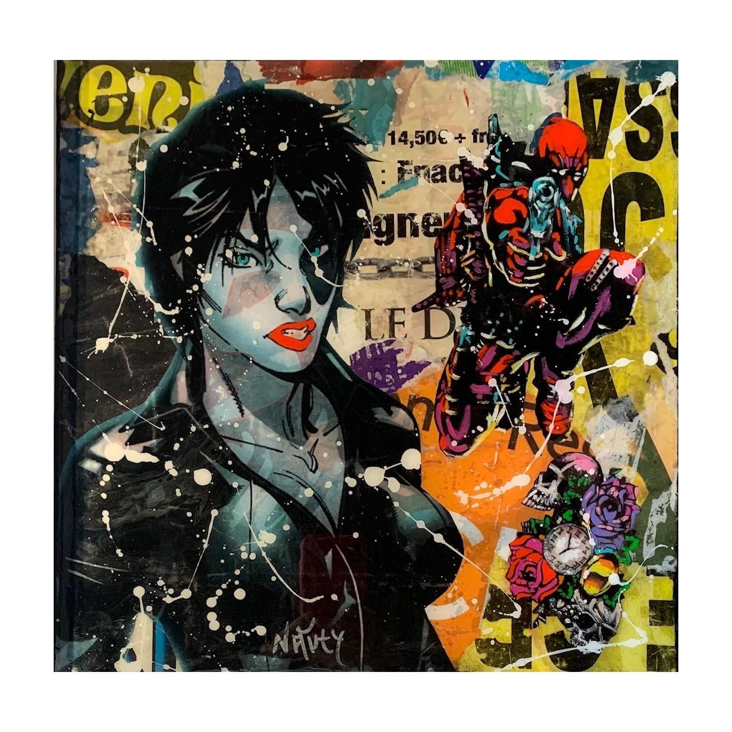 This unique and original contemporary artwork "Domino forever" on the subject of Pop icons has been created by the contemporary artist Nathy.