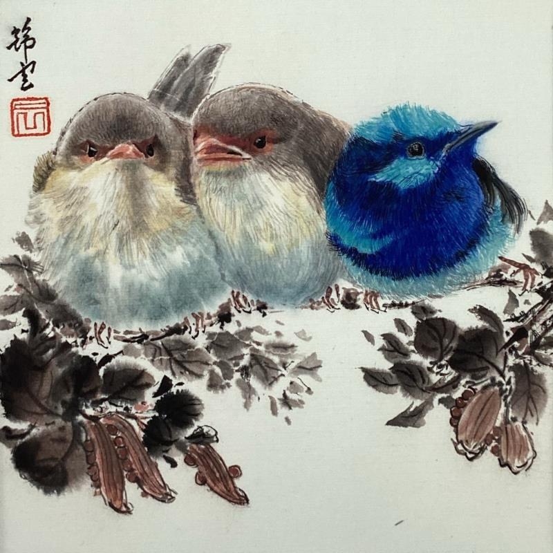 This unique and original contemporary artwork "Mérions superbes" on the subject of Animals has been created by the contemporary artist Tayun.