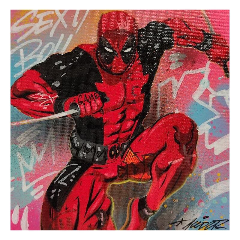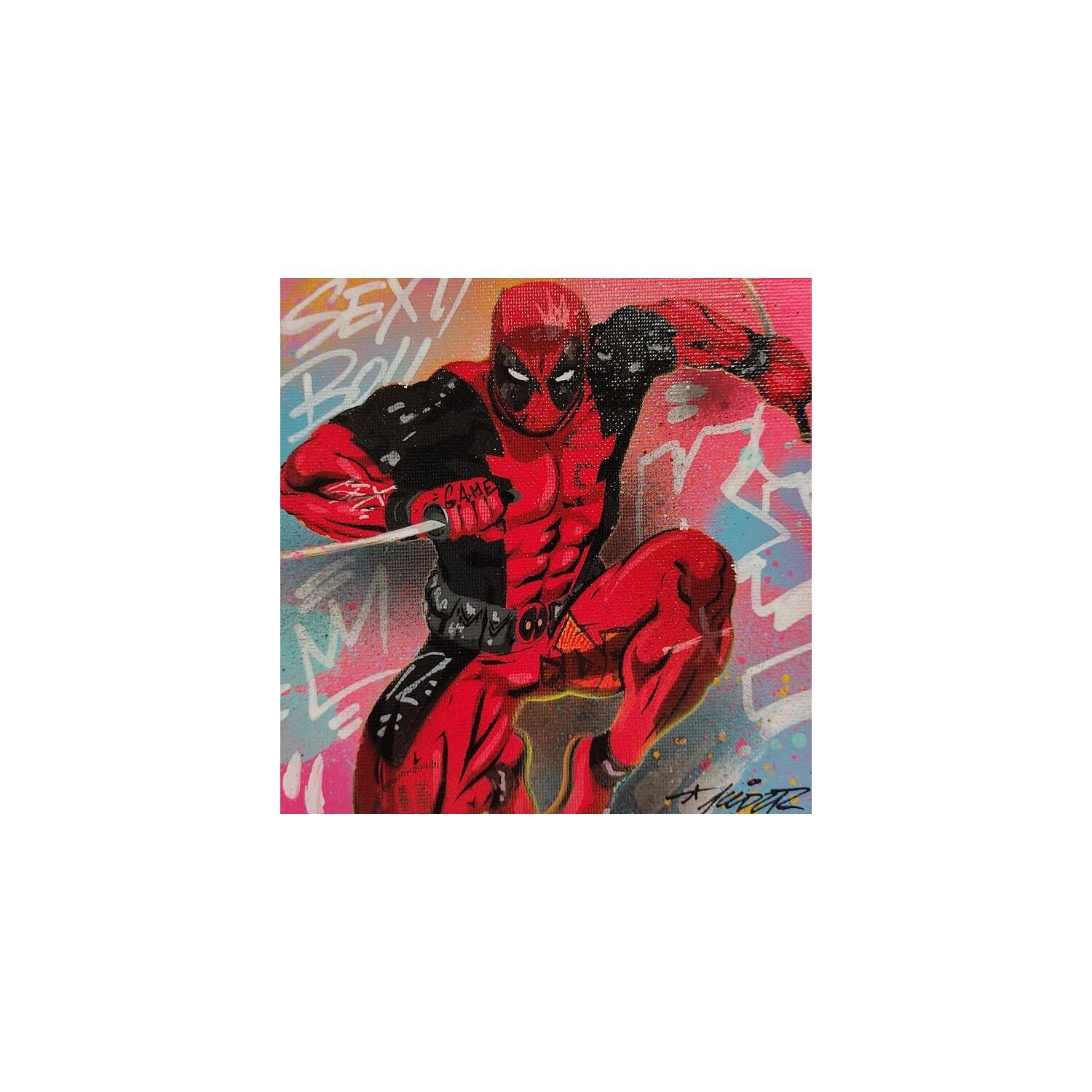 This unique and original contemporary artwork "Deadpool 2" on the subject of Pop icons has been created by the contemporary artist Kedarone.