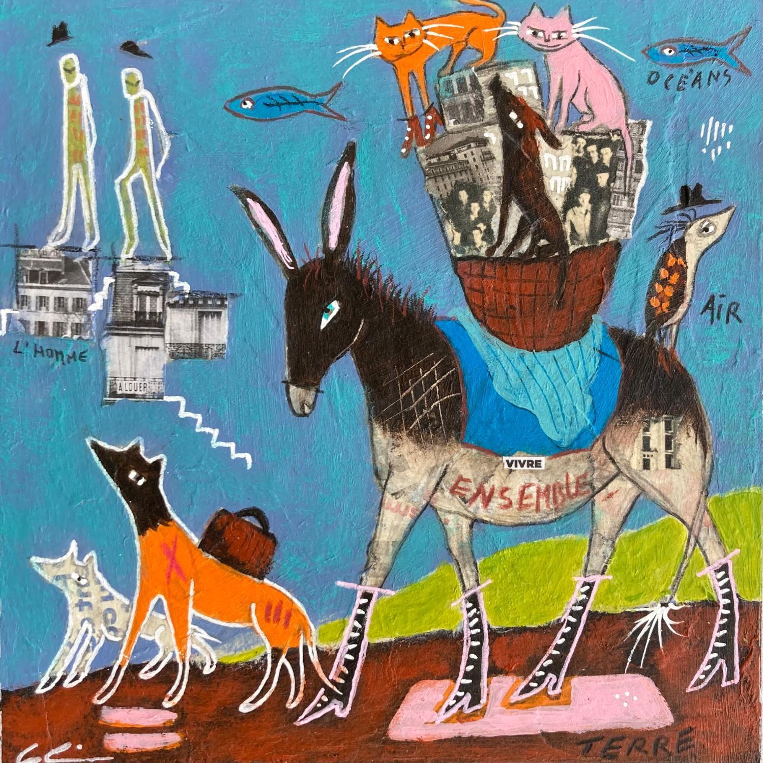 This unique and original contemporary artwork "La marche " on the subject of Animals has been created by the contemporary artist Colin Sylvie.