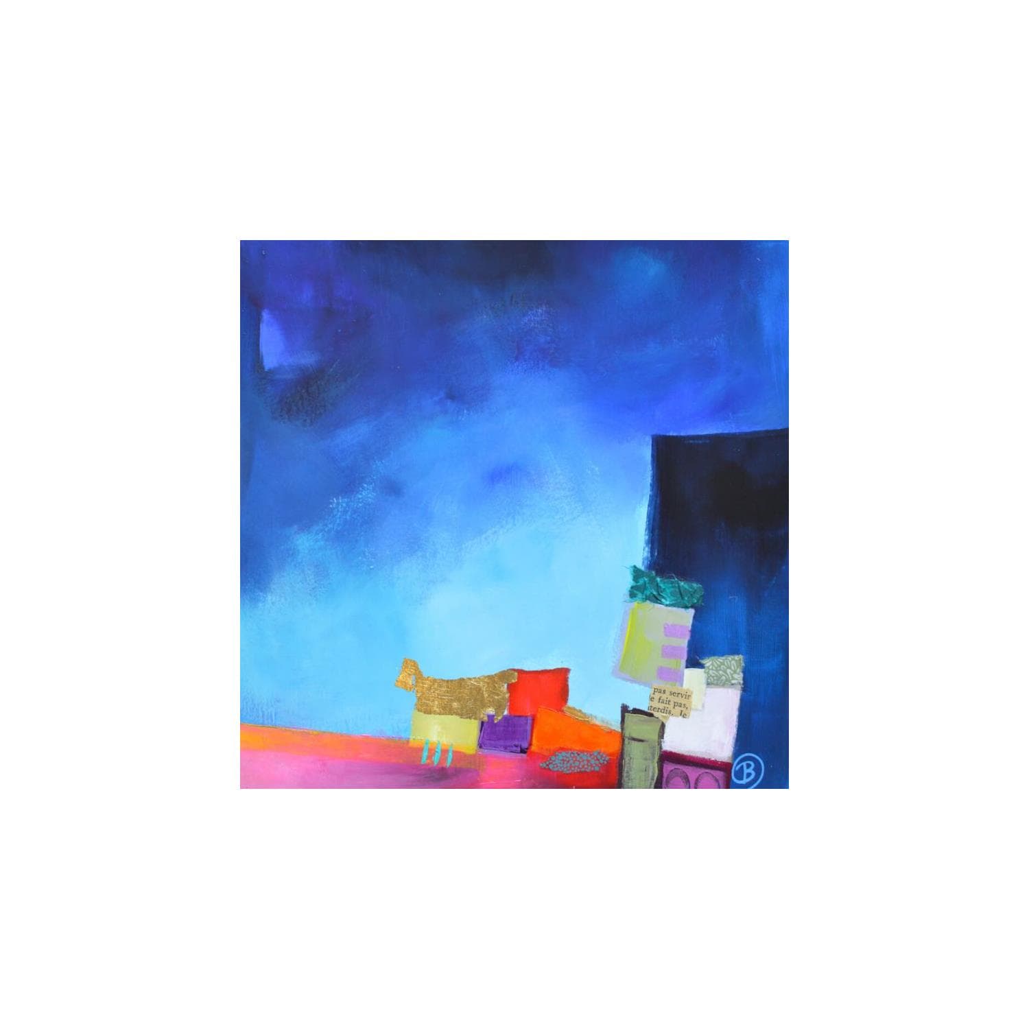 Lau Blou is a painter specializing in abstract art. At 55, she lives surrounded by nature, on the shores of Lac d'Aiguebelette, an environment that nourishes her inspiration and emotions. After a career in graphic design, she turned to painting to freely express her passion for color and form. Her work, marked by the use of paper, acrylics, oil pastels and gold leaf, is exhibited in France and abroad.
