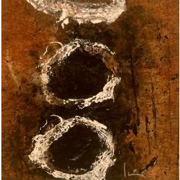 As a child, Francisco saw his mother drawing and painting and felt instinctively attracted to the arts. He joined the School of Fine Arts in Madrid, taking drawing and painting courses and some modelling and sculpture. Initially, Francisco drew in pencil, gradually moving to watercolour, which his uncle introduced to him and taught him the basics. At the time, the subjects of his works were surreal and dreamlike. He worked the drawings meticulously in pen and then added colour with watercolours. Little by little, colour became more important and the amount of drawing was reduced. Today he works exclusively with abstract forms, each freer than the last. When he was around 30 years old, Francisco settled in a small town in the Sierra de Madrid to escape the pace of the city and find peace. This new life changed his way of painting; his subjects, his colour palette, using more organic and natural textures that were closer to the earth, stones and figures he found in his surroundings.