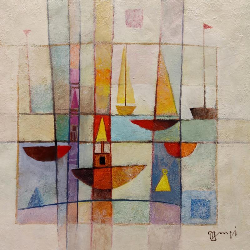 This unique and original contemporary artwork "A019 La balise jaune" on the subjects of Landscapes, Marine has been created by the contemporary artist Burgi Roger.