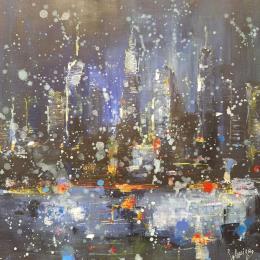 This unique and original contemporary artwork "Night 1" on the subject of Urban has been created by the contemporary artist Solveiga.