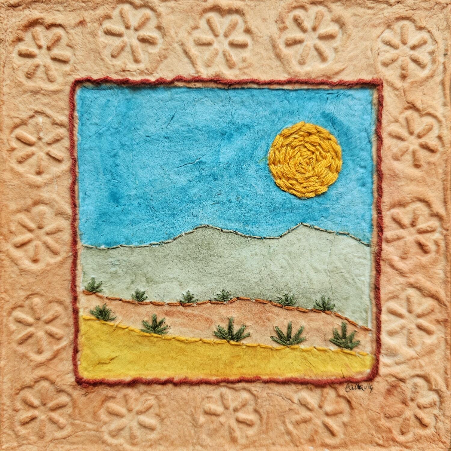The artist used embroidery and watercolor media on Paper to create this Subject matter, Small size painting.