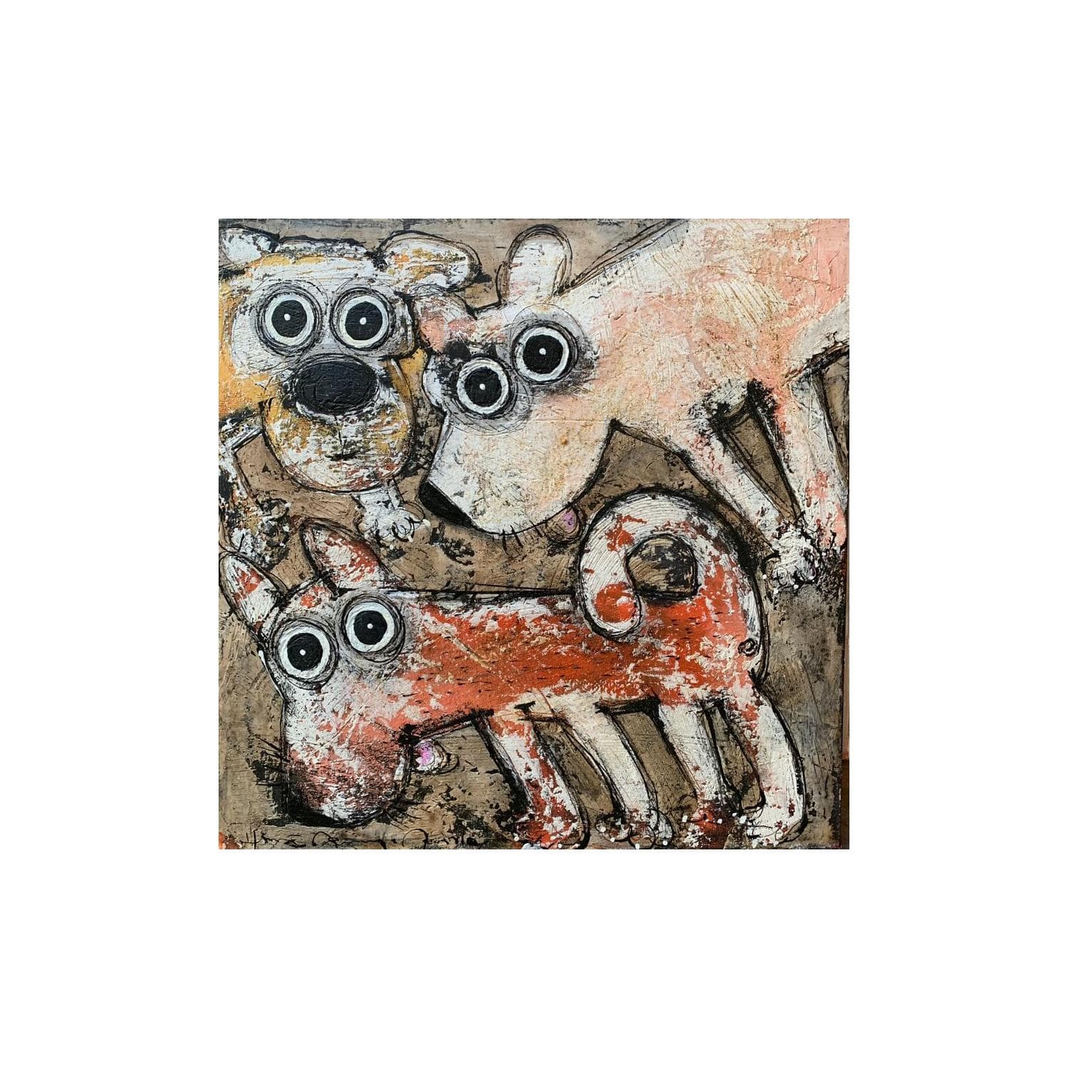 This unique and original contemporary artwork "3 dogs" on the subject of Animals has been created by the contemporary artist Maury Hervé.