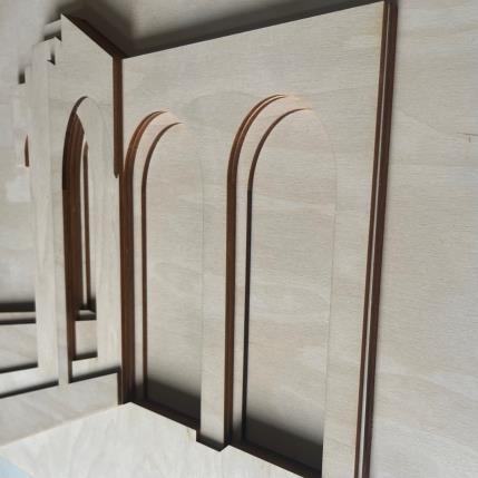 Helen, known by her pseudonym Plyconic, is an East London-based artist with a background in furniture design. Her passion for art blossomed after a captivating visit to London's Barbican Centre, where the interaction of light with architecture deeply inspired her. This decisive moment led her to use plywood, the material of her creations, to capture and recreate the observed play of light.