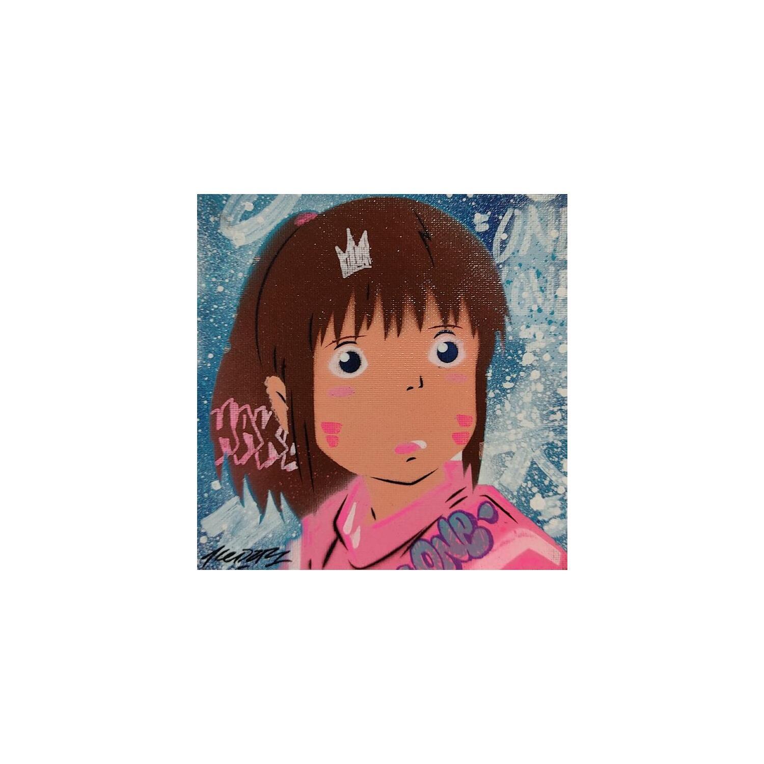 This unique and original contemporary artwork "Chihiro" on the subject of Pop icons has been created by the contemporary artist Kedarone.