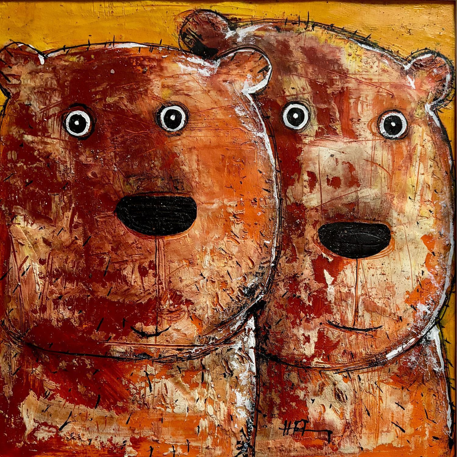 This unique and original contemporary artwork "Selfie For Two" on the subject of Animals has been created by the contemporary artist Maury Hervé.