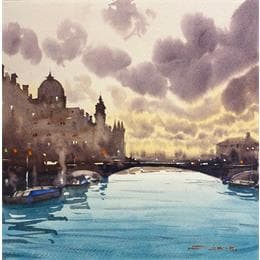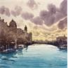 Clouds on My WaterPintura Clouds on My Water por Dandapat Swarup | Pintura Figurative Landscapes Urban Life style Watercolor