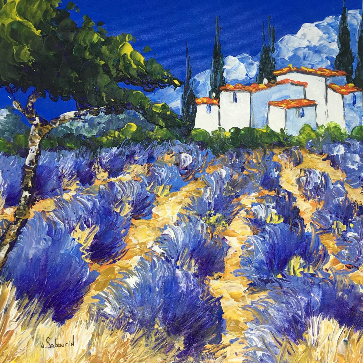 This unique and original contemporary artwork "Parfums de la lavande" on the subjects of Portrait, Pop icons has been created by the contemporary artist Sabourin Nathalie.