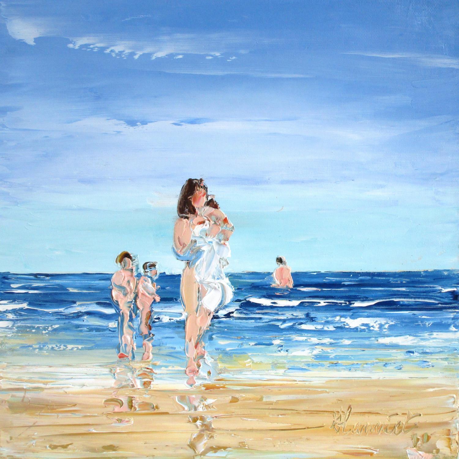 This unique and original contemporary artwork "Sortie de bain familiale à la mer" on the subjects of Marine, Life style has been created by the contemporary artist Hanniet.