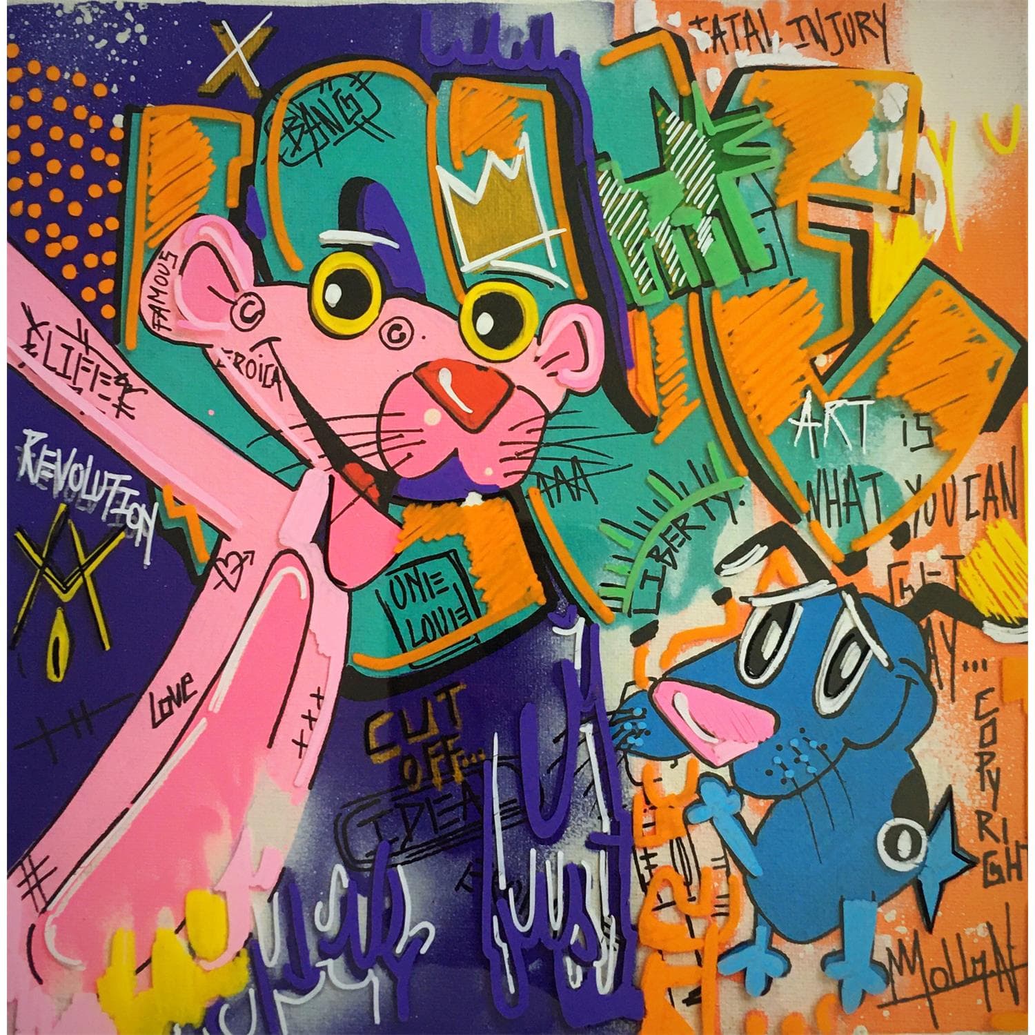 This unique and original contemporary artwork "Love" on the subject of Pop icons has been created by the contemporary artist Molla Nathalie .