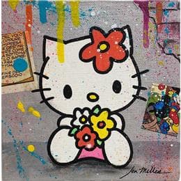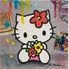 This unique and original contemporary artwork "Flower Kitty" on the subject of Pop icons has been created by the contemporary artist Miller Jen .