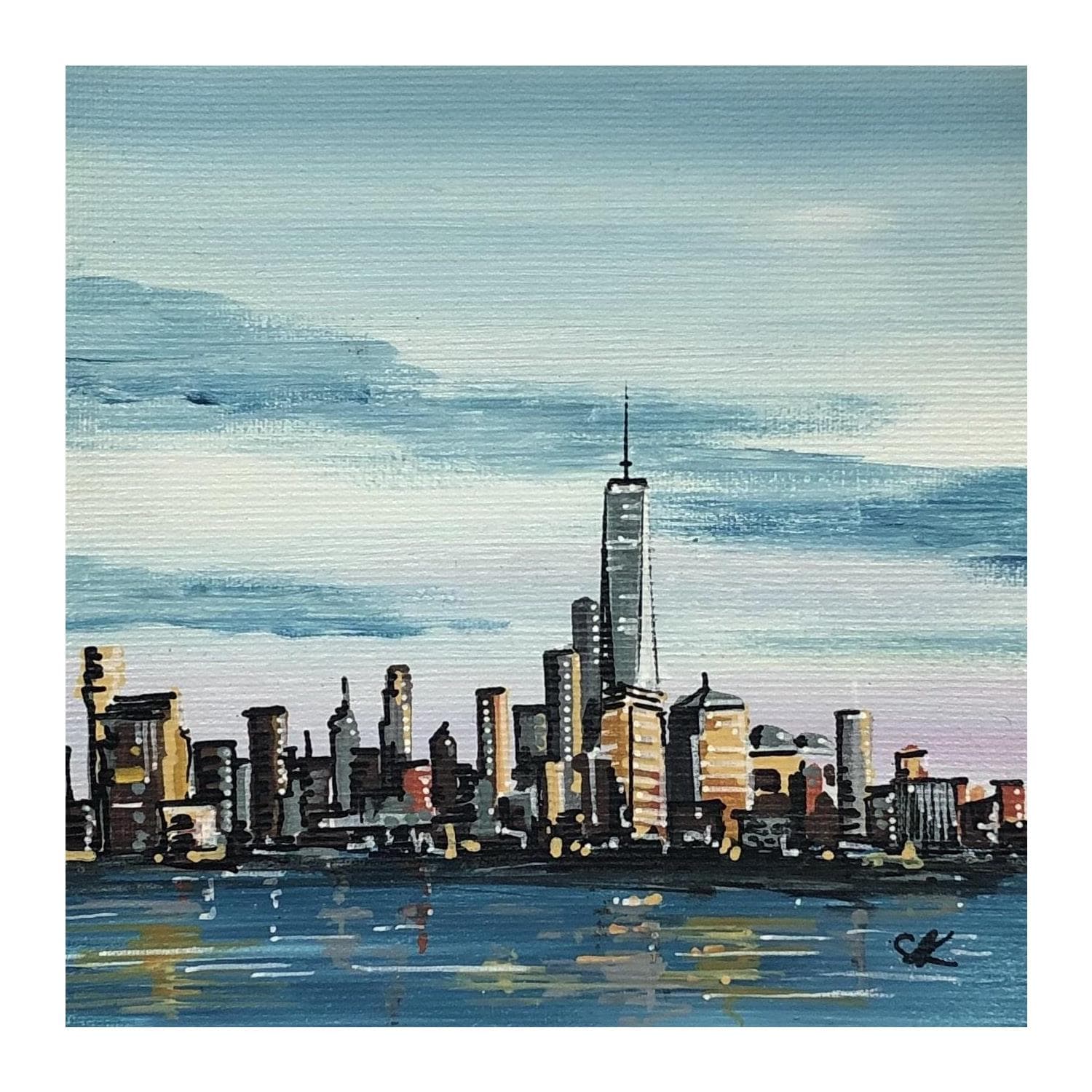 This unique and original contemporary artwork "Manhattan depuis baie d'Hudson" on the subject of Urban has been created by the contemporary artist Touras Sophie-Kim .