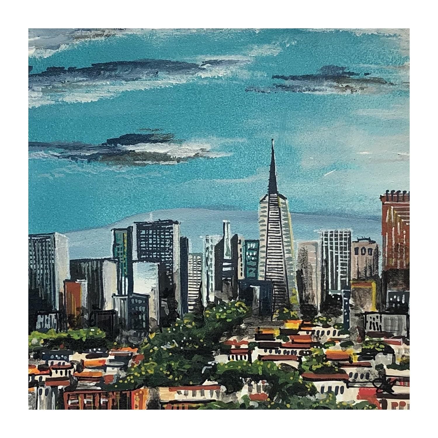 This unique and original contemporary artwork "Transamerica pyramid San Francisco" on the subject of Urban has been created by the contemporary artist Touras Sophie-Kim .
