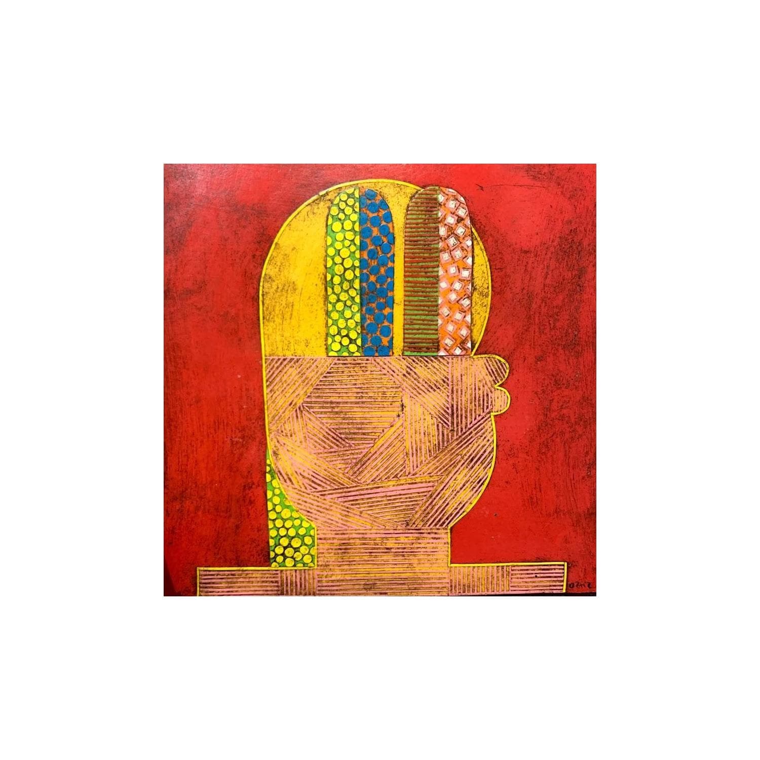The artist used Cardboard, Gluing media on Cardboard to create this Raw art, Small size painting.