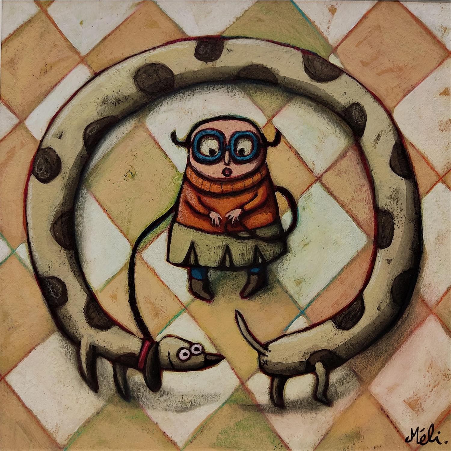 Rencontre avec soi-mêmePintura Rencontre avec soi-même por Catoni Melina | Pintura Naive art Life style Animals Acrylic