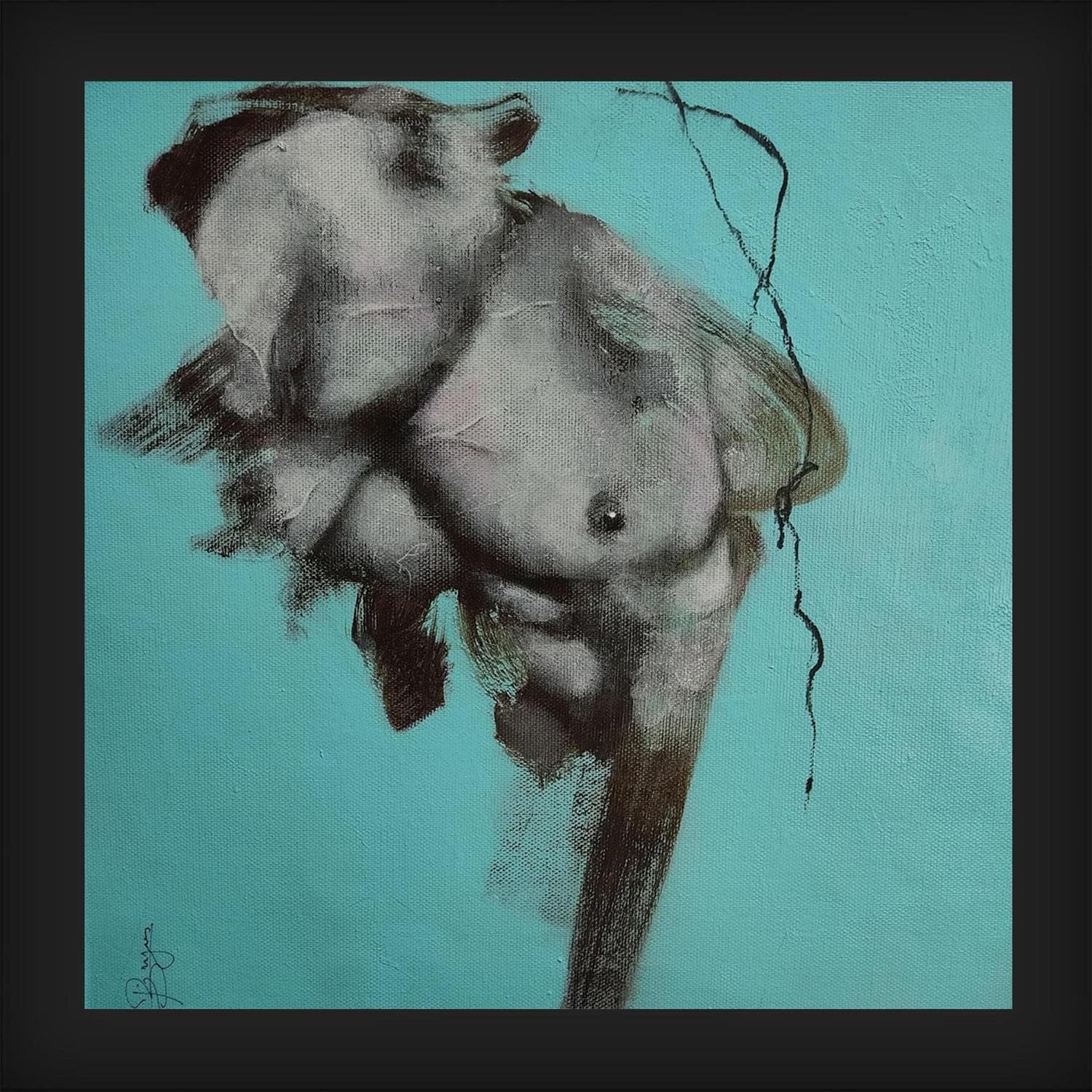 Pintura Torse bleu por Bergues Laurent | Pintura Figurative Nude Minimalist Acrylic