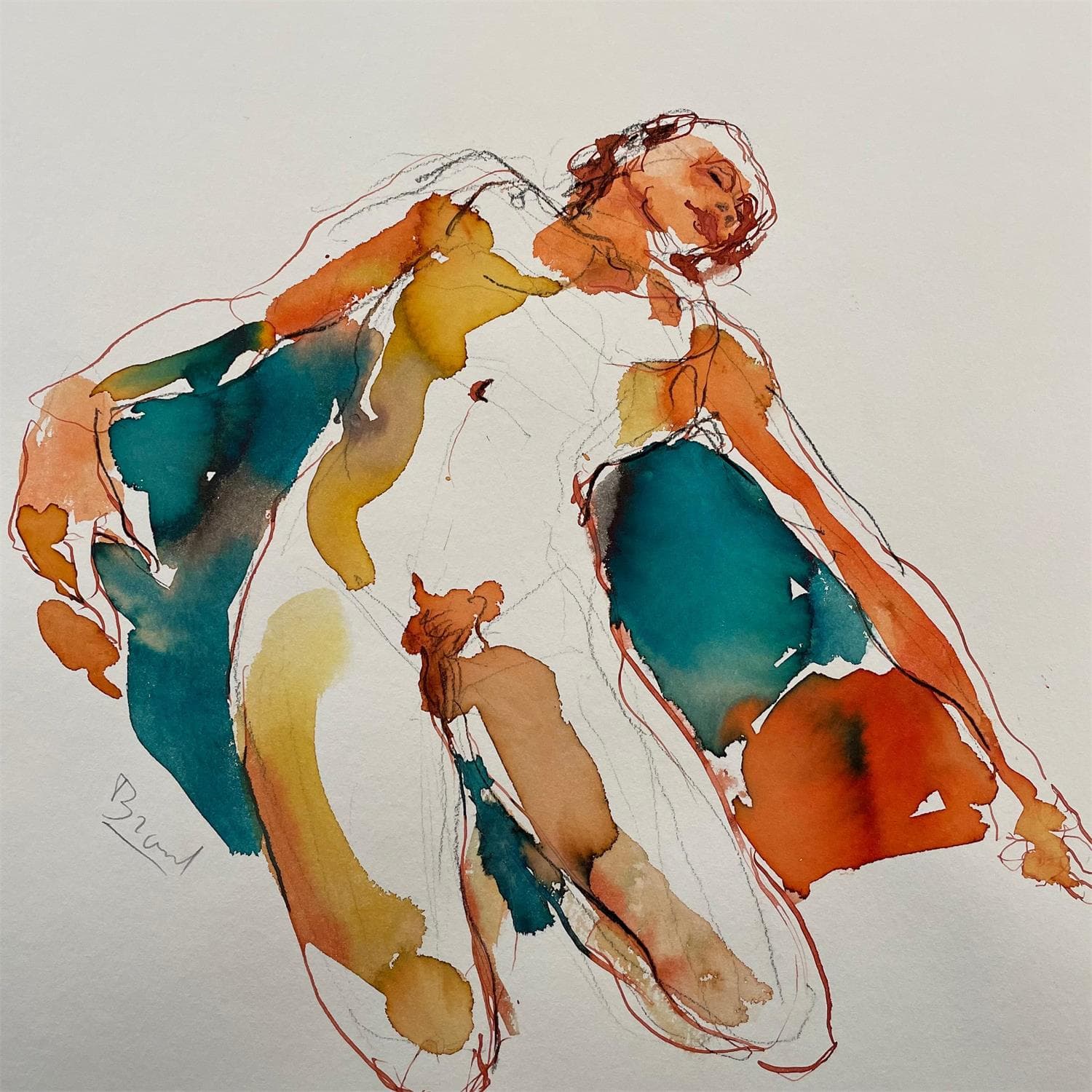 The artist used Watercolor medium on Paper to create this Figurative, Small size painting.
