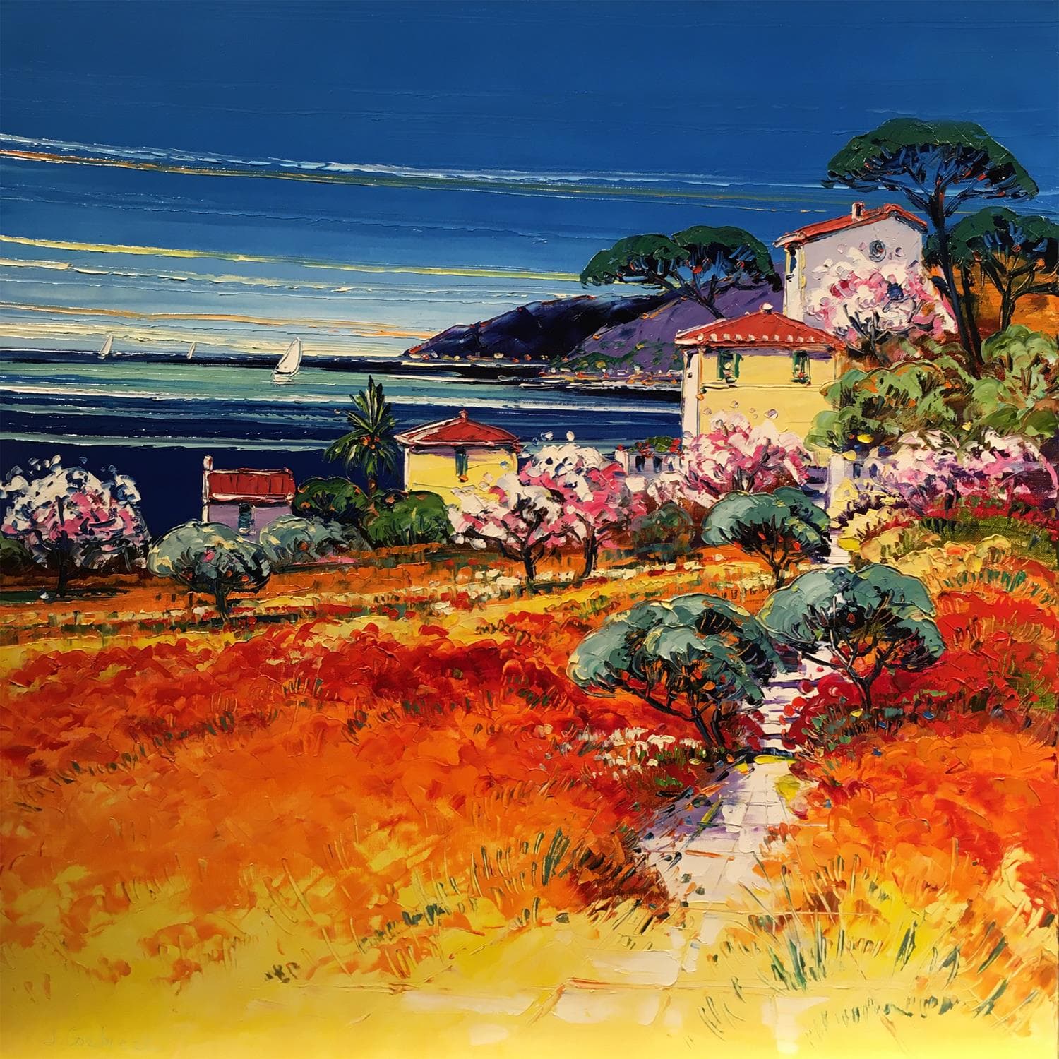 This unique and original contemporary artwork "La côte d'azur" on the subject of Landscapes has been created by the contemporary artist Corbière Liisa.